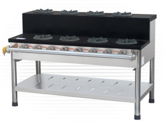 爐面板采用優(yōu)質(zhì)不銹鋼板。爐體骨架選用40X40X4mm角鐵焊接制作并加防銹漆, 爐頭支架250X250mm結(jié)構(gòu)堅固,外形美觀簡潔。每個爐面燃燒器都配置獨立控制開關。配有安全點火棒一支。